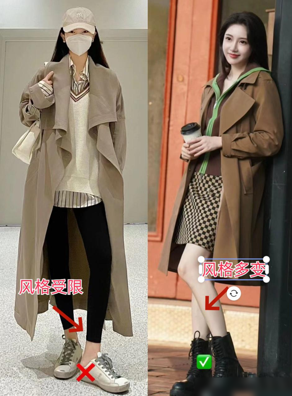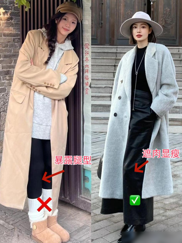 第一:风衣和打底裤的搭配真的OUT了!